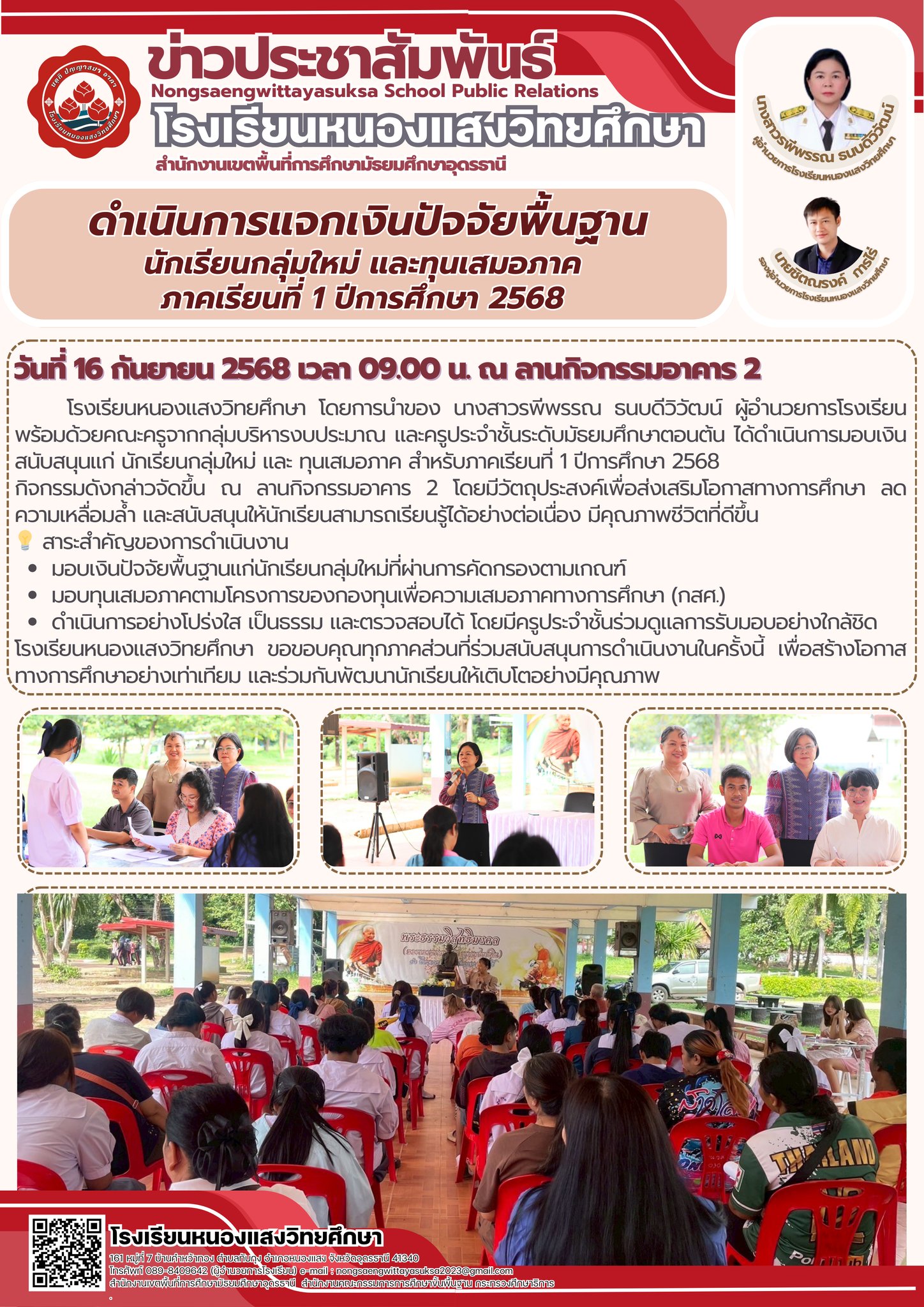 📌 โรงเรียนหนองแสงวิทยศึกษา มอบเงินปัจจัยพื้นฐานและทุนเสมอภาค ภาคเรียนที่ 1/2568