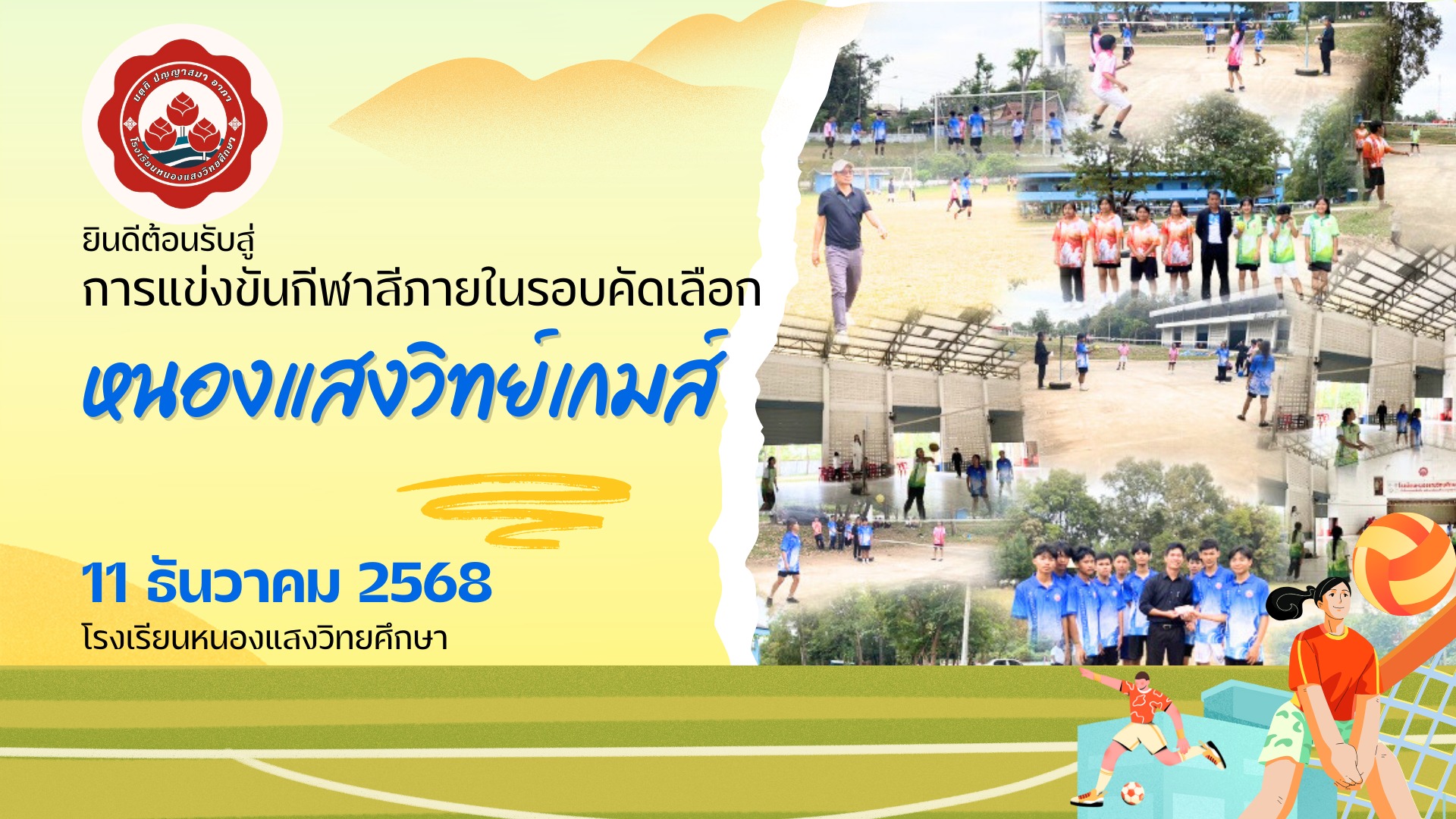 โรงเรียนหนองแสงวิทย์ศึกษาเปิดฉากการแข่งขันกีฬาสีภายในรอบคัดเลือก “หนองแสงวิทย์เกมส์” ประจำปี 2568 อย่างคึกคัก เมื่อวันที่ 11 ธันวาคม 2568 ณ สนามกีฬาโรงเรียน โดยมีนักเรียนเข้าร่วมแข่งขันหลากหลายประเภทกีฬา อาทิ วอลเลย์บอล ฟุตบอล และกิจกรรมเชียร์สร้างสีสันอย่างเต็มที่