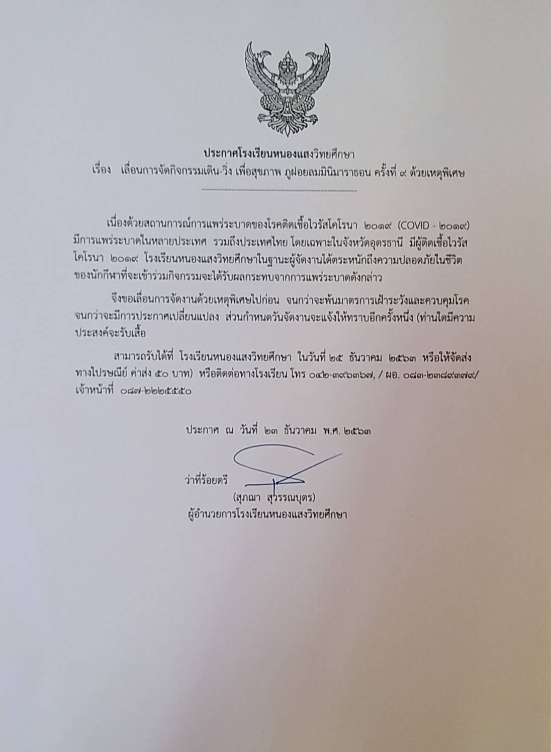 โทรศัพท์ 089-8409642 (ผู้อำนวยการโรงเรียน)
