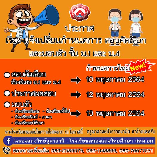 📢 แจ้ง เปลี่ยนกำหนดการวันสอบและวันมอบตัว นักเรียนชั้น ม.1 และ ม.4 ดังนี้