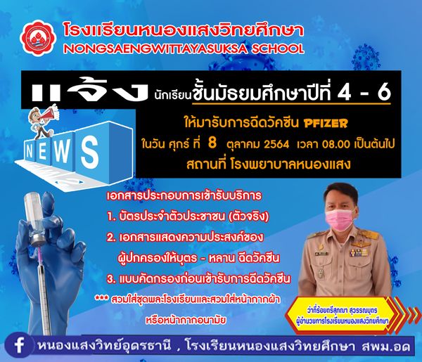📣ประชาสัมพันธ์ เรื่องการฉีดวัคซีน 💉เฉพาะ ม.4 - 6 นะครับ