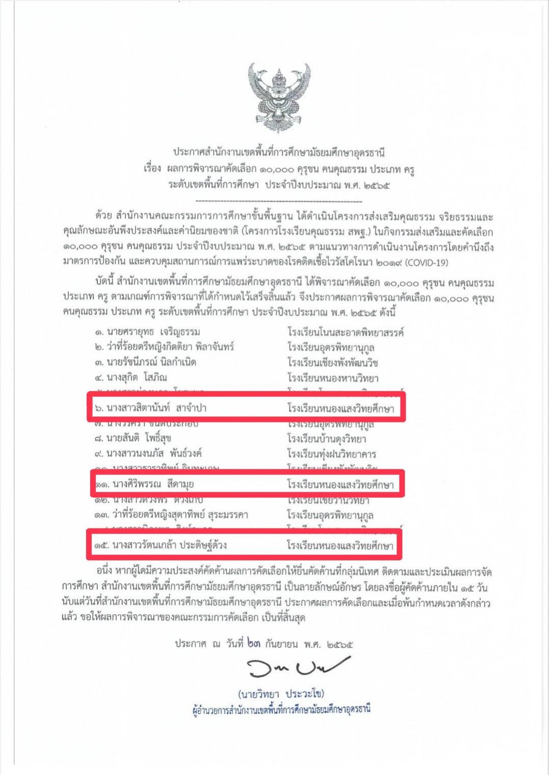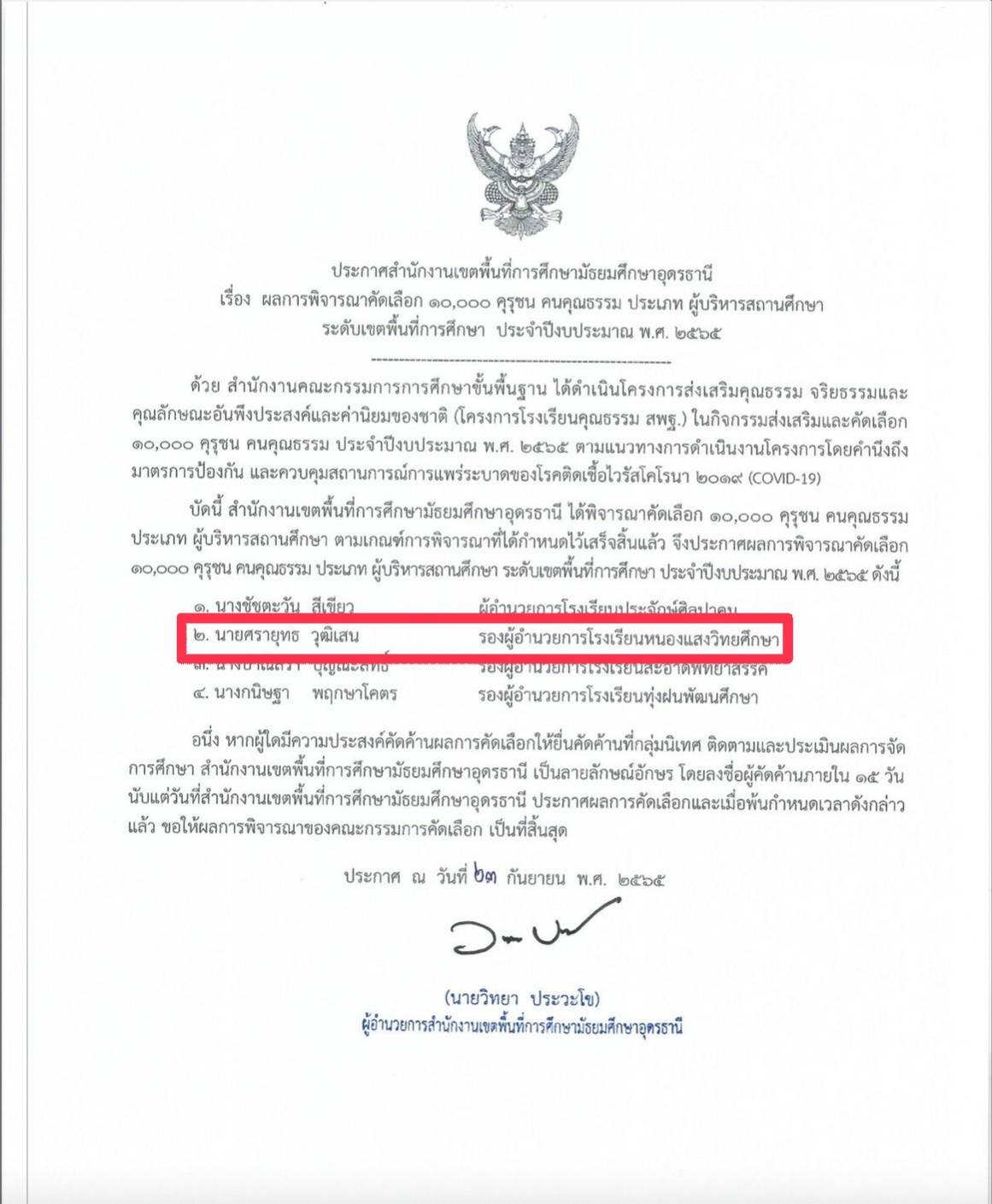 ผลการพิจารณคัดเลือก 10,000 คุรุชน คนคุณธรรม ระดับเขตพื้นที่การศึกษา ประจำงบประมาณ พ.ศ.2565