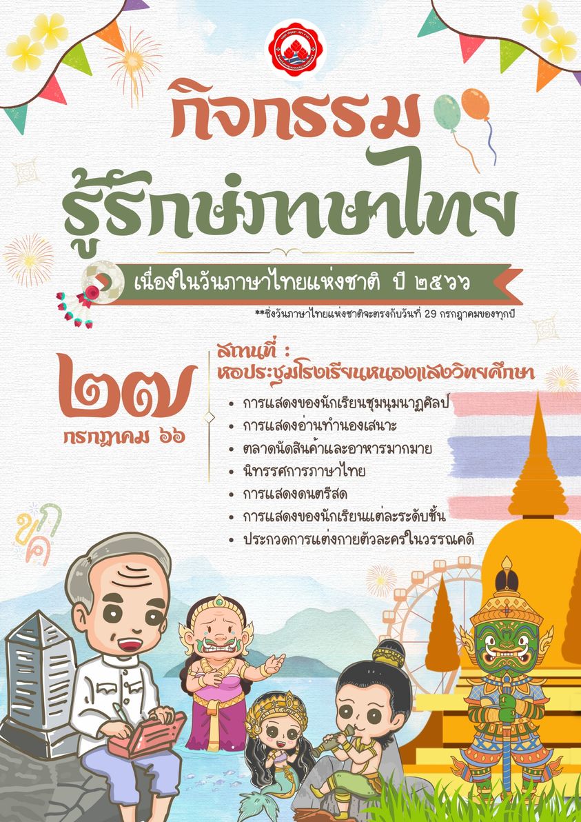 27 ก.ค.66 นี้พบกับกิจกรรมรู้รักษ์ภาษาไทย ที่หอประชุมรร.