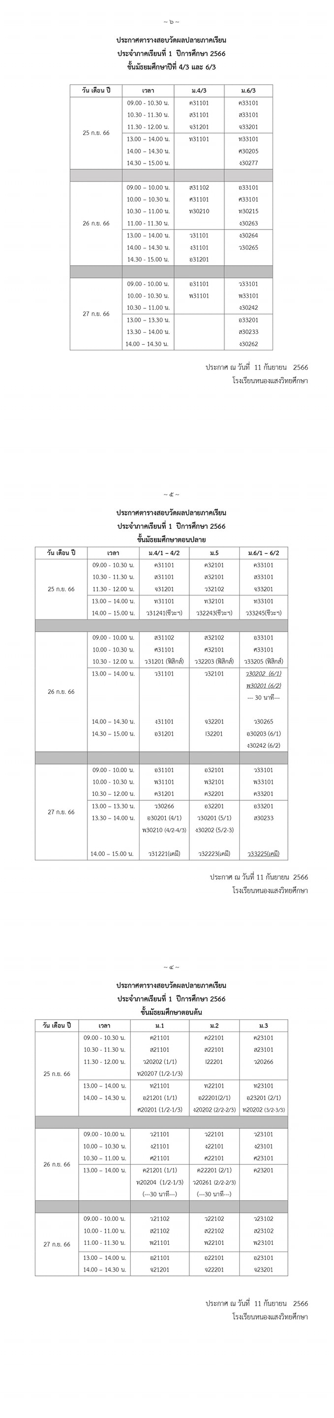 📌 ✅ตารางสอบปลายภาค ภาคเรียนที่ 1 ปีการศึกษา 2566 ชั้นมัธยมศึกษาปีที่ 1 - 6 ✅📌