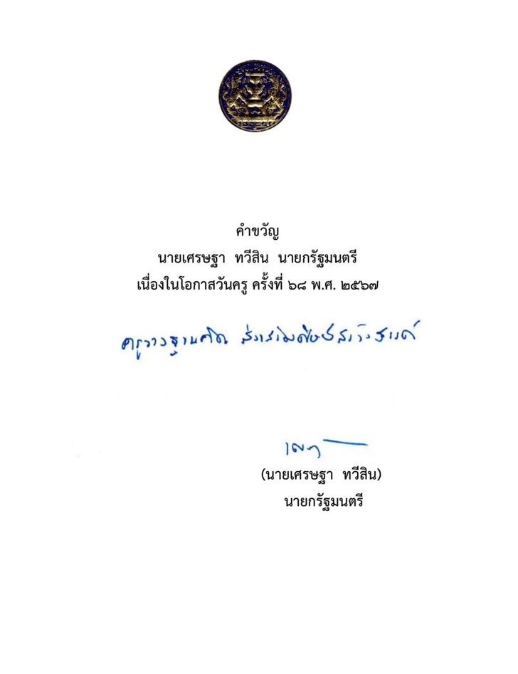 โดย นายกรัฐมนตรี เศรษฐา ทวีสิน คือ