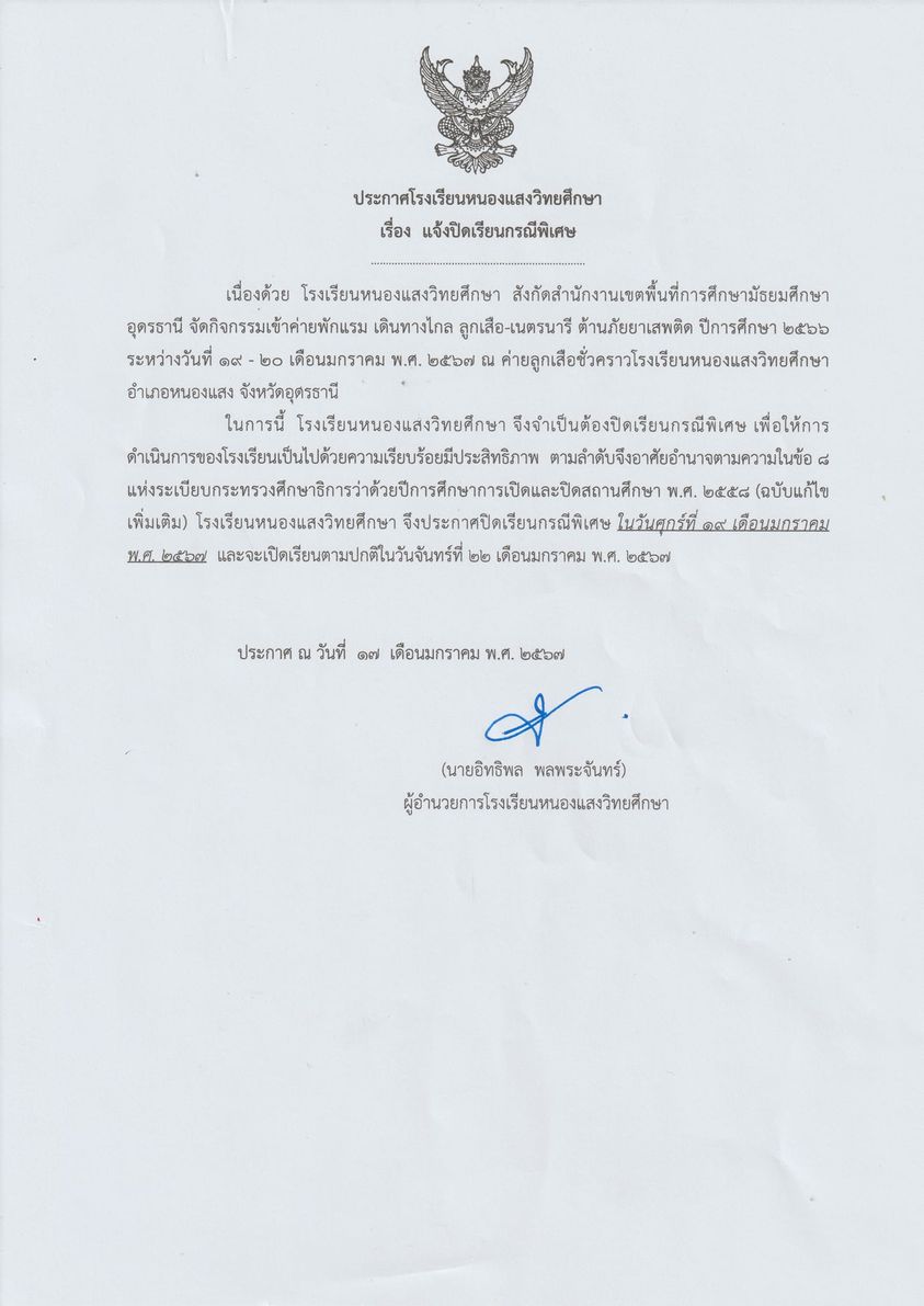 จึงประกาศปิดเรียนกรณีพิเศษ ในวันศุกร์ ที่ 19 มกราคม 2567