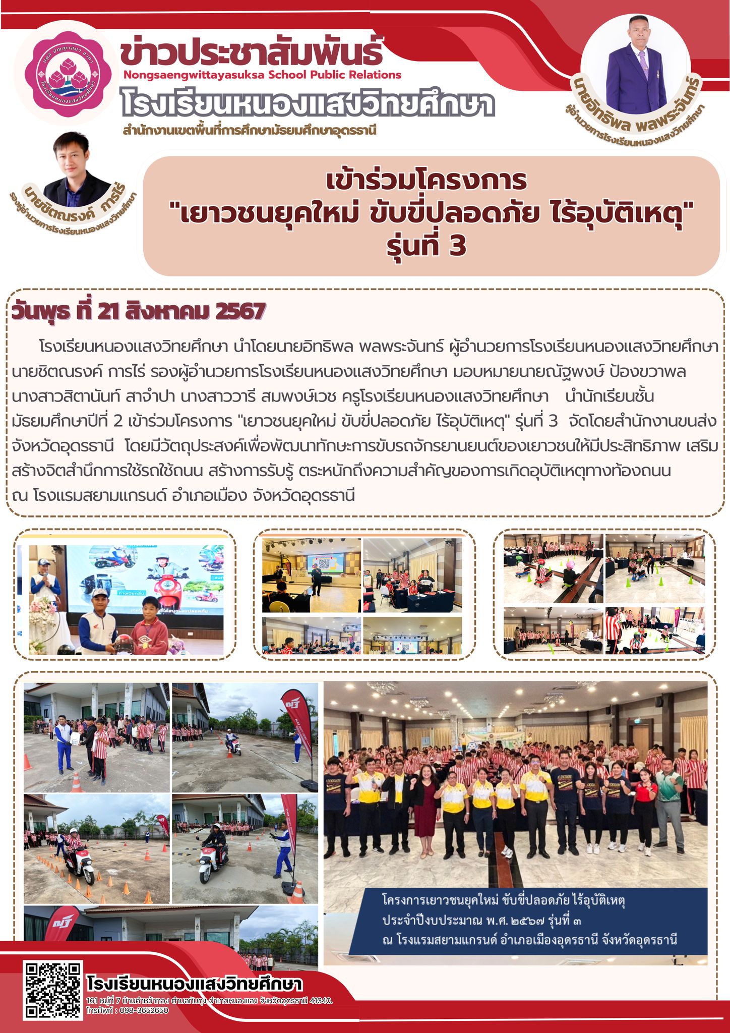 โครงการเยาวชนยุคใหม่ ขับขี่ปลอดภัย ไร้อุบัติเหตุ รุ่นที่ 3