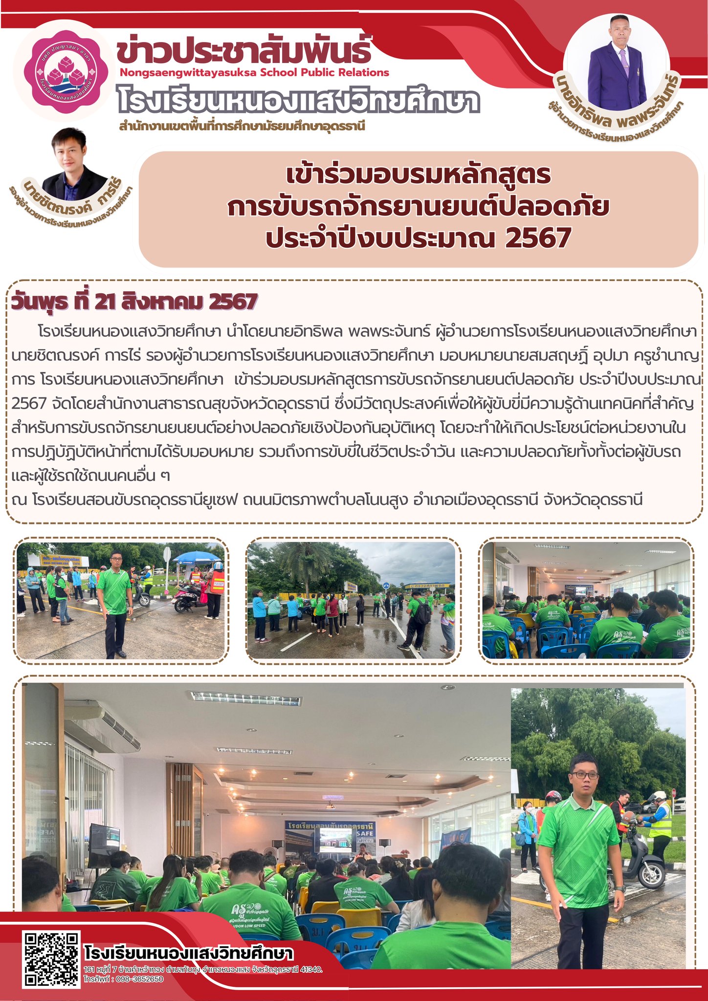 ร่วมอบรมหลักสูตรการขับรถจักรยานยนต์ปลอดภัย ประจำปีงบประมาณ 2567