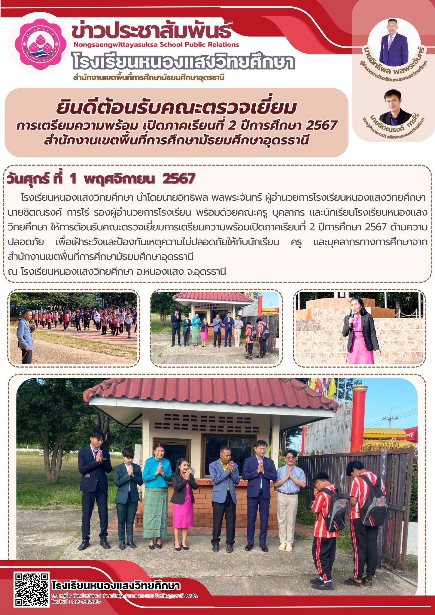 ยินดีต้อนรับคณะตรวจเยี่ยม การเตรียมความพร้อม เปิดภาคเรียนที่ 2 ปีการศึกษา 2567
