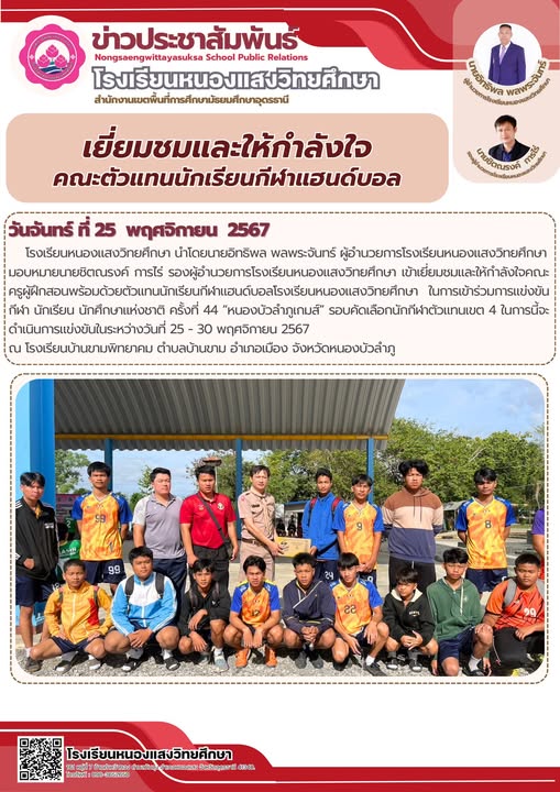 เยี่ยมชมและให้กำลังใจคณะตัวแทนนักเรียนกีฬาแฮนด์บอล