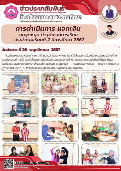 การดำเนินการแจกเงิน งบอุดหนุน ค่าอุปกรณ์การเรียน ประจำภาคเรียนที่ 2 ปีการศึกษา 2567
