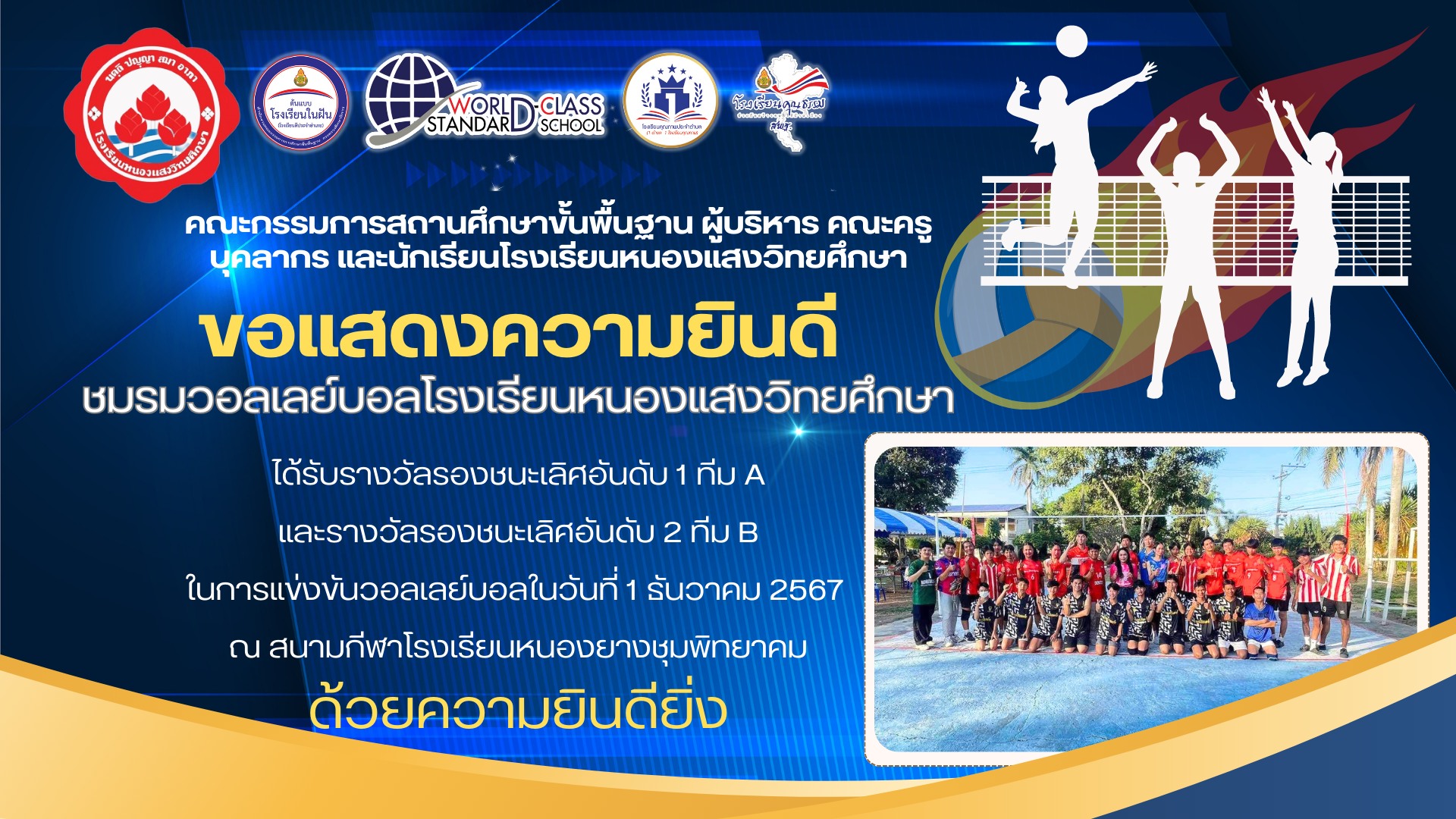 ขอความแสดงยินดีชมรมวอลเลย์บอลโรงเรียนหนองแสงวิทยศึกษา