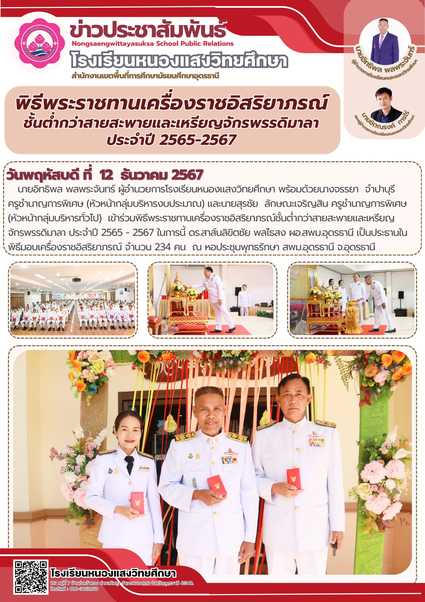 พิธีพระราชทานเครื่องราชอิสริยาภรณ์ ชั้นต่ำกว่าสายสะพานและเหรียญจักรพรรดิมาลา ประจำปี 2565-2567