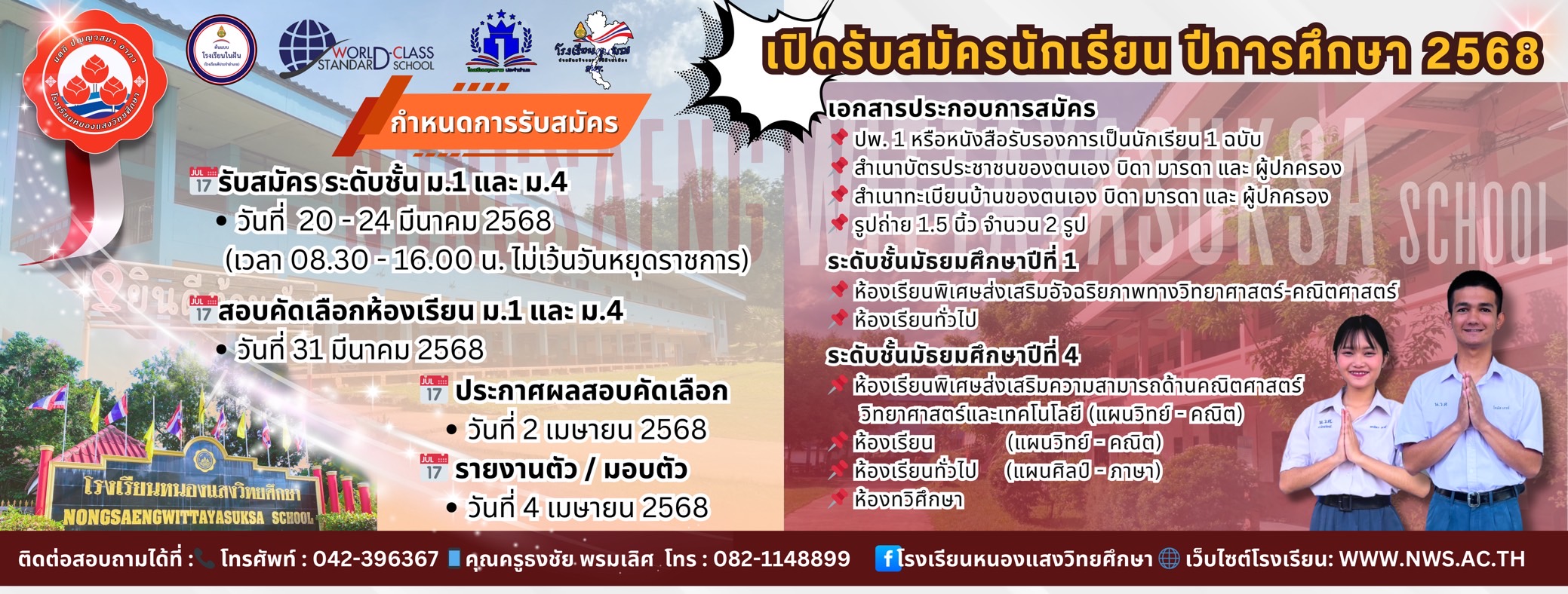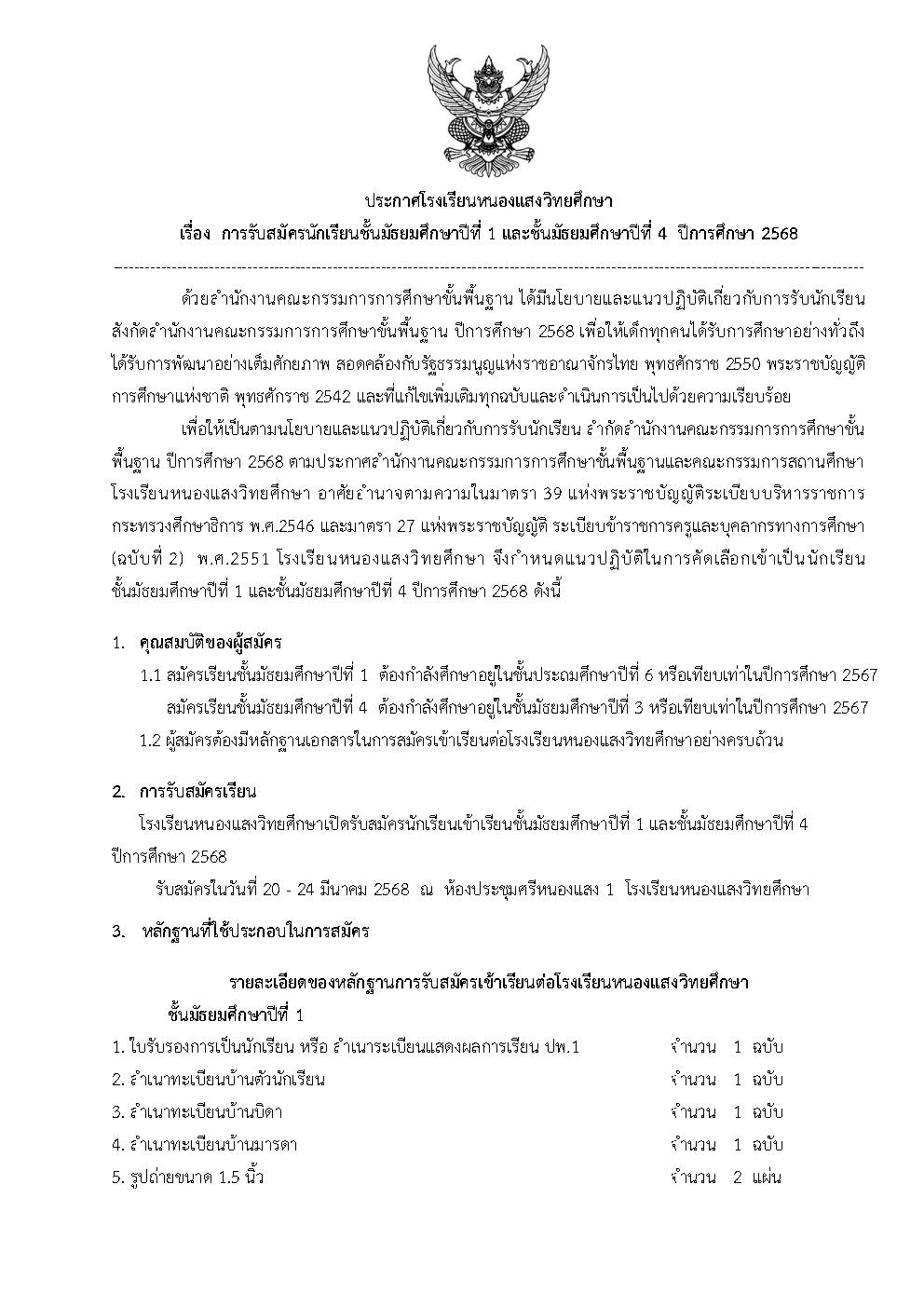 📣ประกาศรับสมัครนักเรียนใหม่ ปีการศึกษา 2568