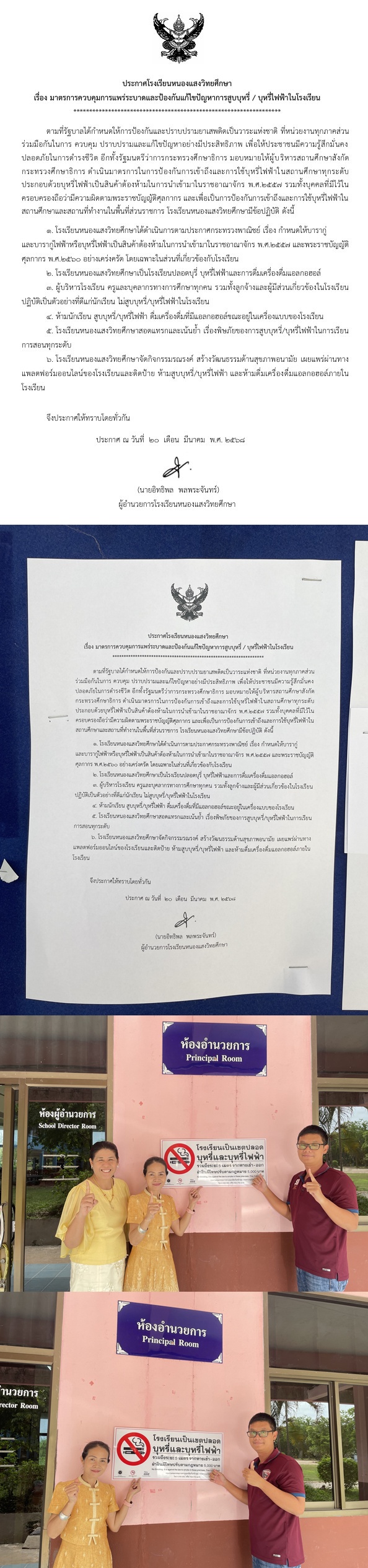 📣#ประกาศโรงเรียนหนองแสงวิทยศึกษา มาตรการควบคุมการแพร่ระบาดและป้องกันแก้ไขปัญหาการสูบบุหรี่/บุหรี่ไฟฟ้าในโรงเรียน