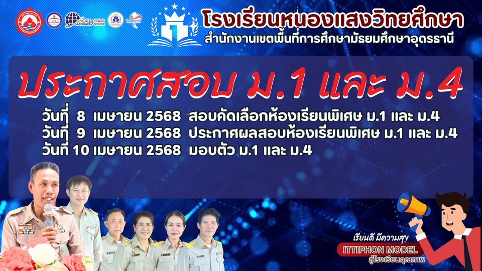 📣ประกาศโรงเรียนหนองแสงวิทยศึกษา กำหนดการสอบคัดเลือกเข้าศึกษาต่อในระดับชั้นมัธยมศึกษาปีที่ 1 และชั้นมัธยมศึกษาปีที่ 4