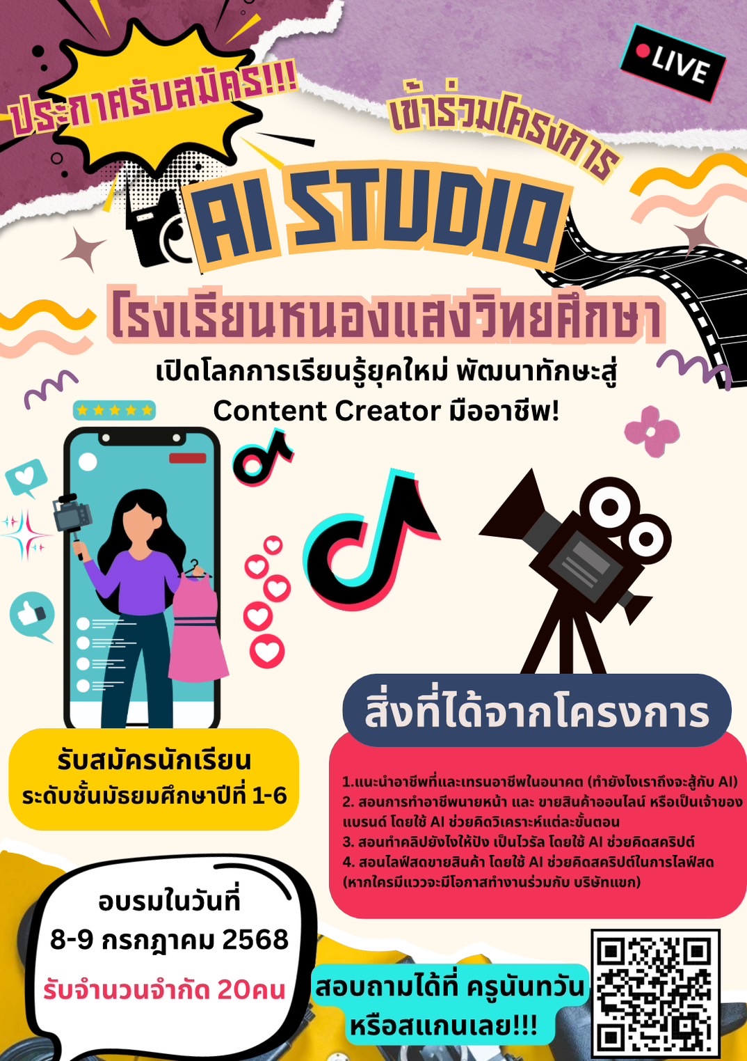 #AIStudioหนองแสง #เด็กสายครีเอทีฟ #เรียนรู้สู้AI #ค่ายเด็ดห้ามพลาด #ปั้นแบรนด์วัยรุ่น |