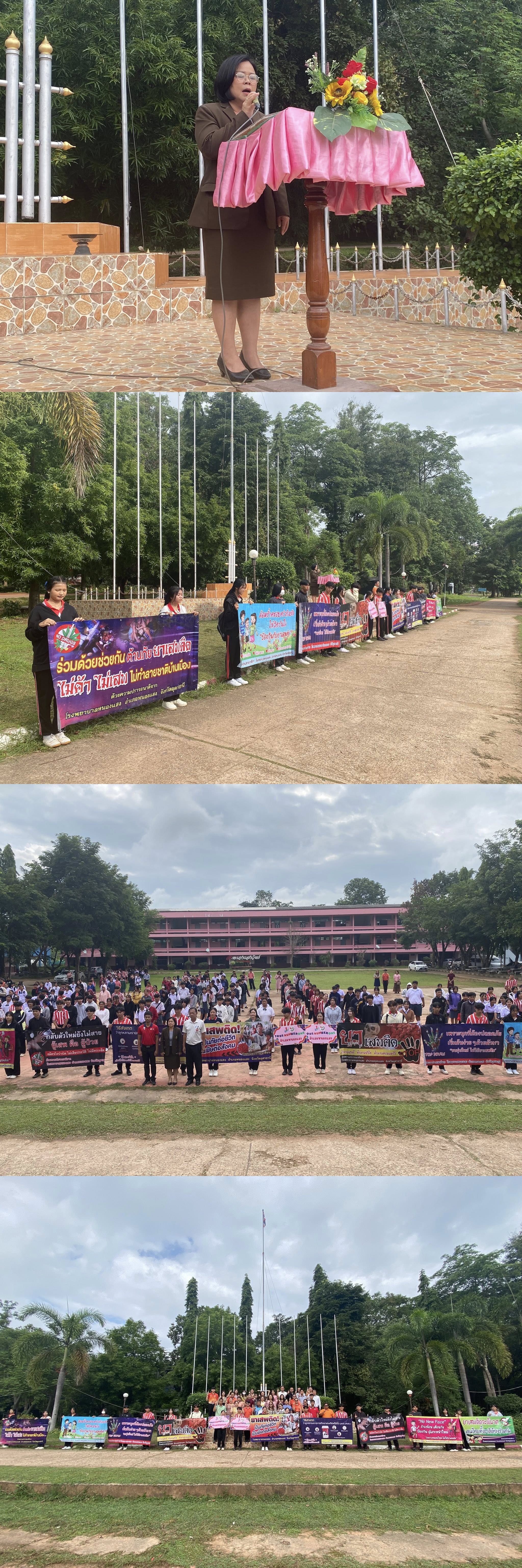 เมื่อวันที่ 26 มิถุนายน 2568 โรงเรียนหนองแสงวิทยศึกษา ได้จัดกิจกรรมวันต่อต้านยาเสพติดโลก ภายใต้การนำของ นางสาวรพีพรรณ ธนบดีวิวัฒน์ ผู้อำนวยการโรงเรียน และ นายชิตณรงค์ การไร่ รองผู้อำนวยการโรงเรียน เพื่อส่งเสริมให้เยาวชนไทยเกิดจิตสำนึกในการมีส่วนร่วมต่อต้านยาเสพติด และสร้างกระแสรณรงค์ให้นักเรียนหันมาดำเนินชีวิตห่างไกลยาเสพติดอย่างจริงจัง กิจกรรมในครั้งนี้ประกอบด้วย ขบวนพาเหรดเชิงสัญลักษณ์ การกล่าวคำปฏิญาณตนของนักเรียน และการแสดงของชมรมเยาวชนต้านภัยยาเสพติด สะท้อนพลังของนักเรียนและคณะครูในการร่วมมือกันสร้างสรรค์สังคมปลอดภัยจากยาเสพติด โรงเรียนหนองแสงวิทยศึกษามุ่งมั่นที่จะปลูกฝังคุณธรรม จริยธรรม และเสริมสร้างภูมิคุ้มกันทางใจให้แก่เยาวชน เพื่อเติบโตเป็นพลเมืองที่เข้มแข็งและมีความรับผิดชอบต่อสังคม