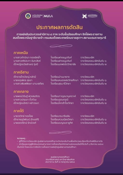 🏫 โรงเรียนหนองแสงวิทยศึกษา ขอแสดงความยินดีอย่างยิ่งแก่ นายจตุรพิตร สุขขา นักเรียนระดับมัธยมศึกษาปีที่ 5/1 ที่ได้สร้างชื่อเสียงให้กับโรงเรียน ด้วยการคว้ารางวัล รองชนะเลิศอันดับ 1 จากการแข่งขันประกวดเล่านิทาน 4 ภาค ระดับมัธยมศึกษา ชิงโล่พระราชทานสมเด็จพระกนิษฐาธิราชเจ้า กรมสมเด็จพระเทพรัตนราชสุดาฯ สยามบรมราชกุมารี ประจำปี 2568 ซึ่งจัดโดย ศูนย์สยามทรรศน์ศึกษา คณะศิลปศาสตร์ มหาวิทยาลัยมหิดล