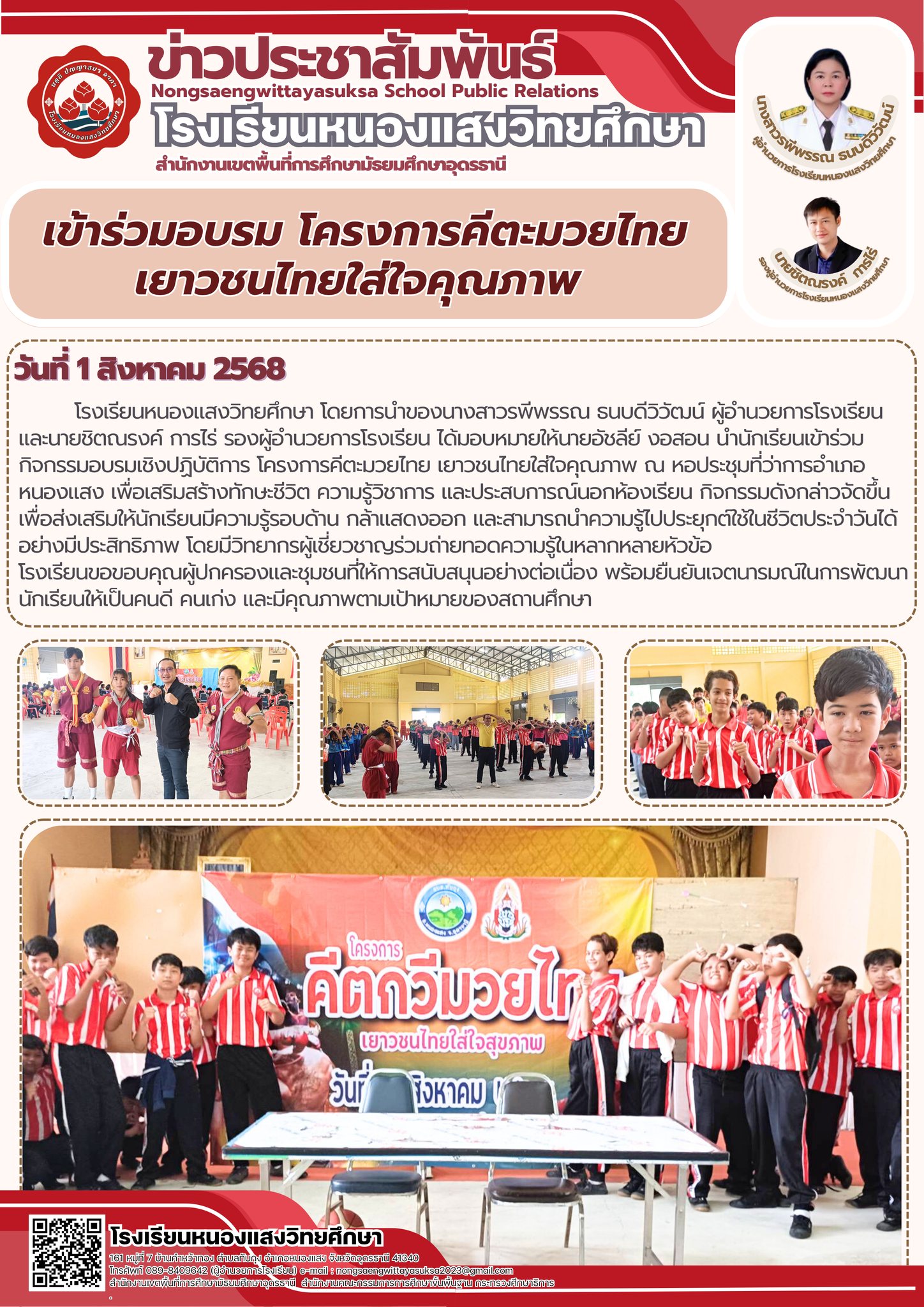🎉 โรงเรียนหนองแสงวิทยศึกษา ร่วมส่งเสริมเยาวชนไทยใส่ใจคุณภาพ ผ่านกิจกรรมคีตะมวยไทย 🇹🇭🥋