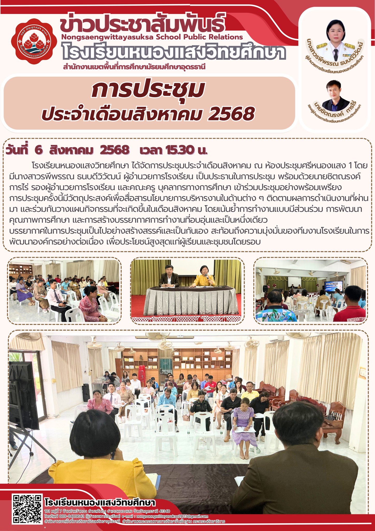 📌 ประชุมประจำเดือนสิงหาคม โรงเรียนหนองแสงวิทยศึกษา