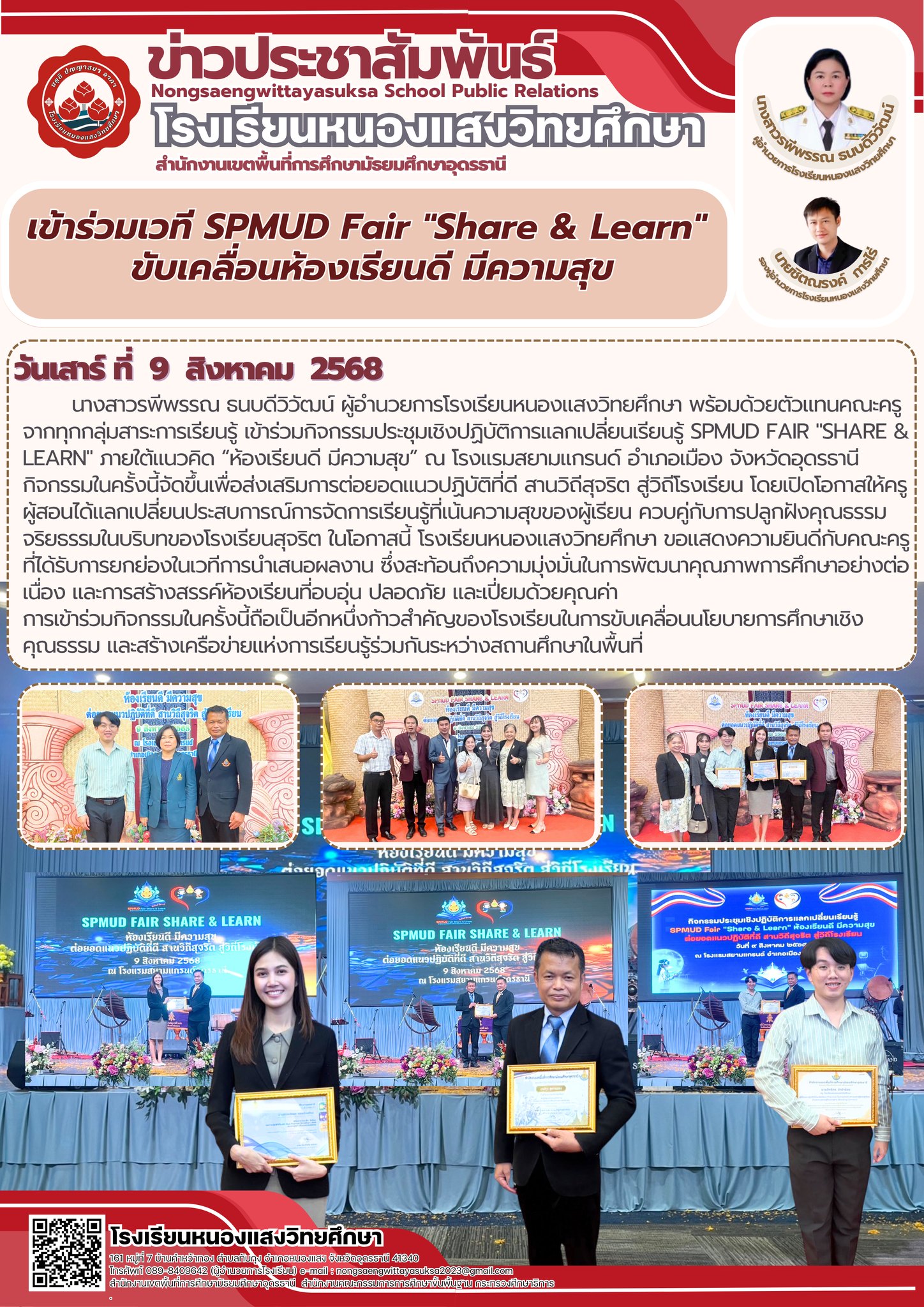 🎉 โรงเรียนหนองแสงวิทยศึกษา ร่วมเวที SPMUD Fair "Share & Learn"