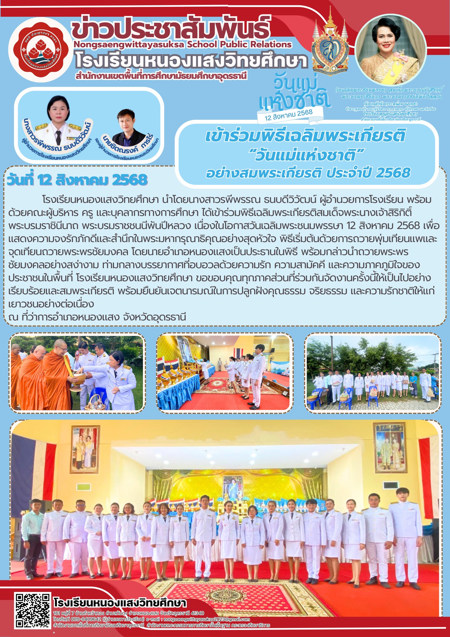 ✨ โรงเรียนหนองแสงวิทยศึกษา ร่วมพิธีเฉลิมพระเกียรติ “วันแม่แห่งชาติ” ✨
