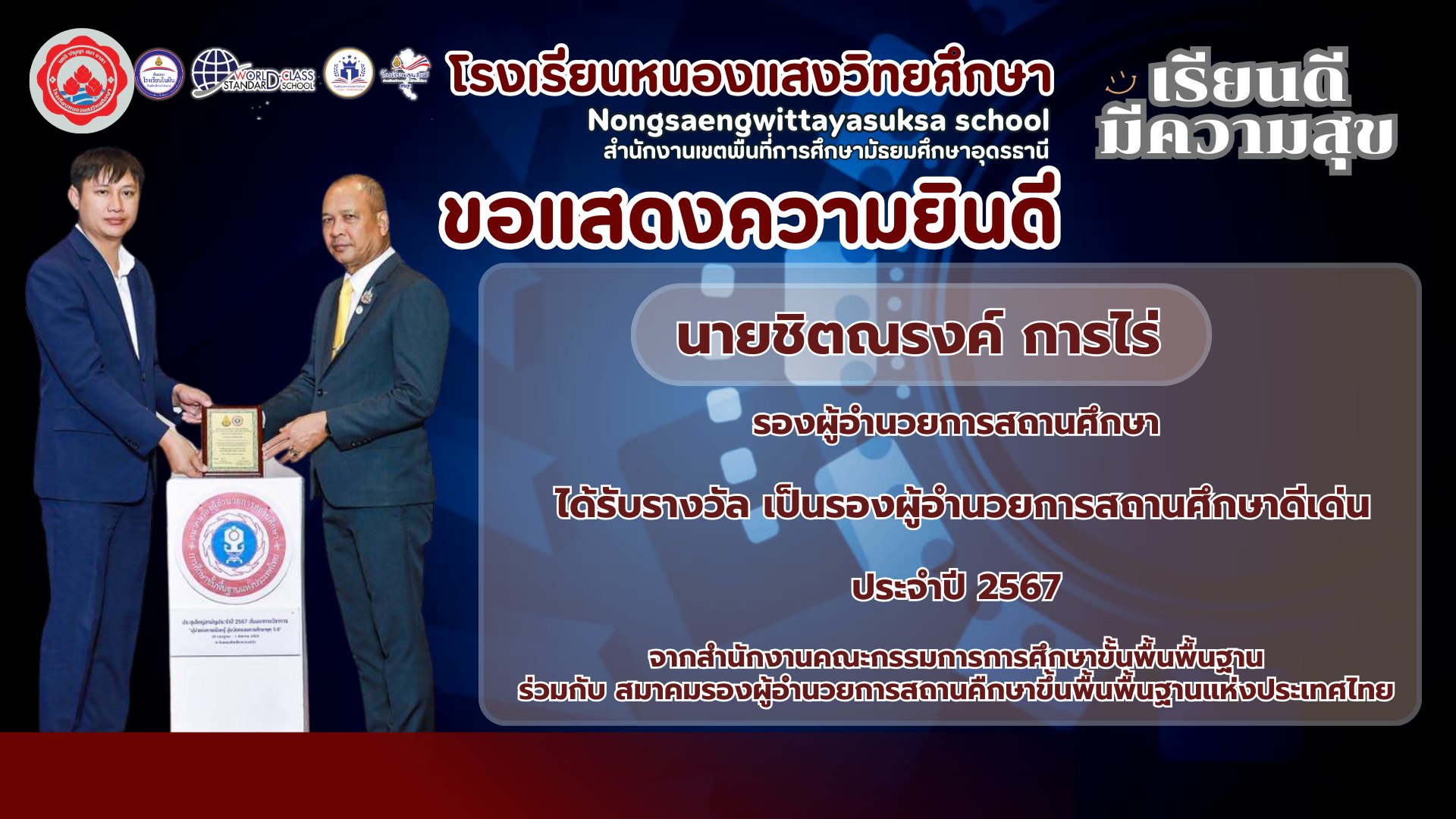 🎉✨ ขอแสดงความยินดีอย่างยิ่ง ✨🎉 กับ นายชิตณรงค์ การไร่ รองผู้อำนวยการโรงเรียน