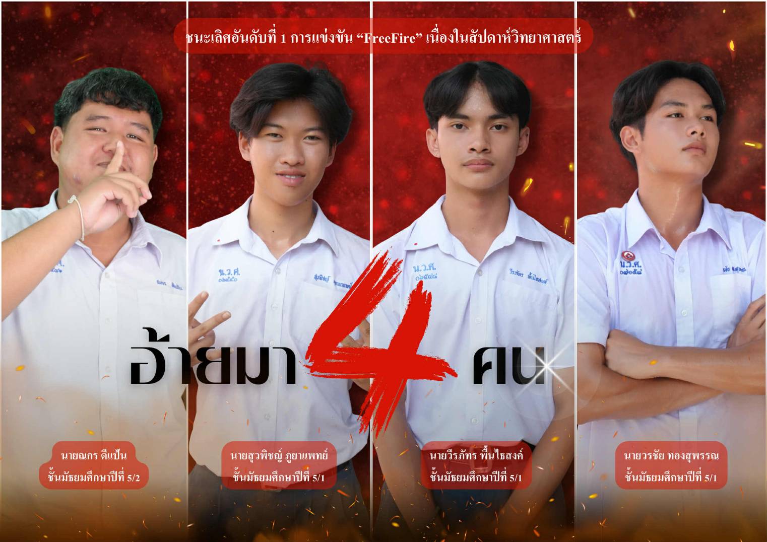 ขอชื่นชมในความตั้งใจและความสามารถของนักเรียนทุกคน และขอให้ก้าวต่อไปอย่างมั่นใจ สร้างแรงบันดาลใจให้กับเพื่อนๆ และรุ่นน้องในโรงเรียนต่อไปครับ
