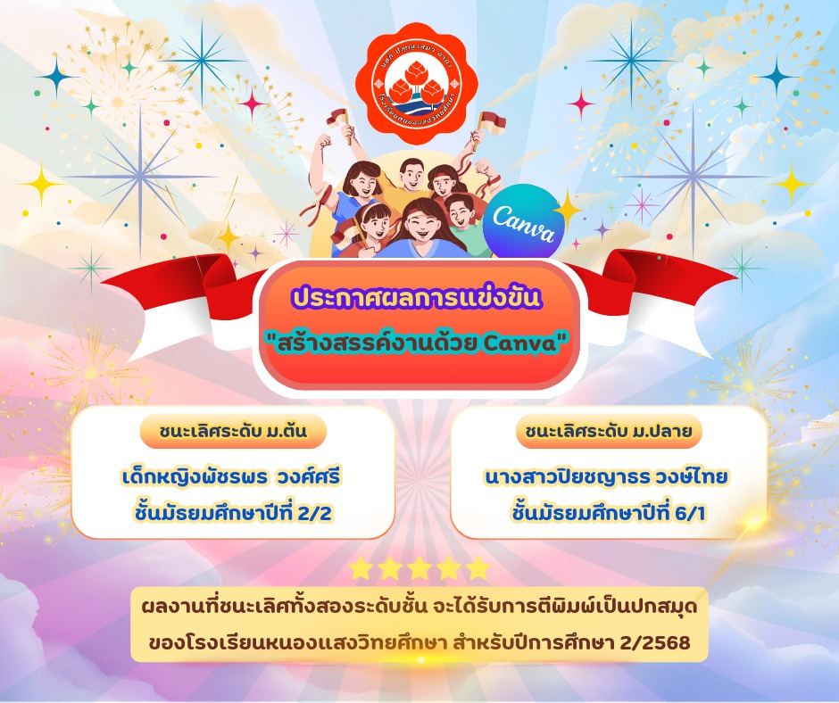 📣 ประกาศผลการแข่งขันชนะเลิศ 📣 การประกวด “สร้างสรรค์งานด้วย Canva”